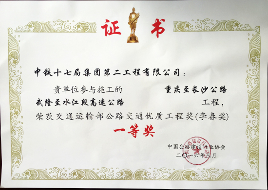 • 建筑業資質: 鐵路工程施工總承包特級 建筑工程施工總承包特級 市政公用工程施工總承包特級 公路工程施工總承包特級 水利水電工程施工總承包一級 橋梁工程專業承包一級 隧道工程專業承包一級 公路路基工程專業承包一級 鐵路鋪軌架梁工程專...